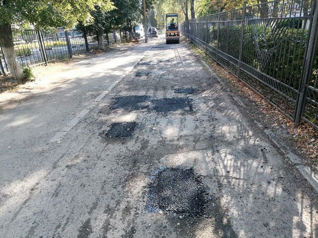 Сотрудники МБУ «Благоустройство» произвели ямочный ремонт дорожного покрытия на ул. Коммунаров (возле лицея №5).