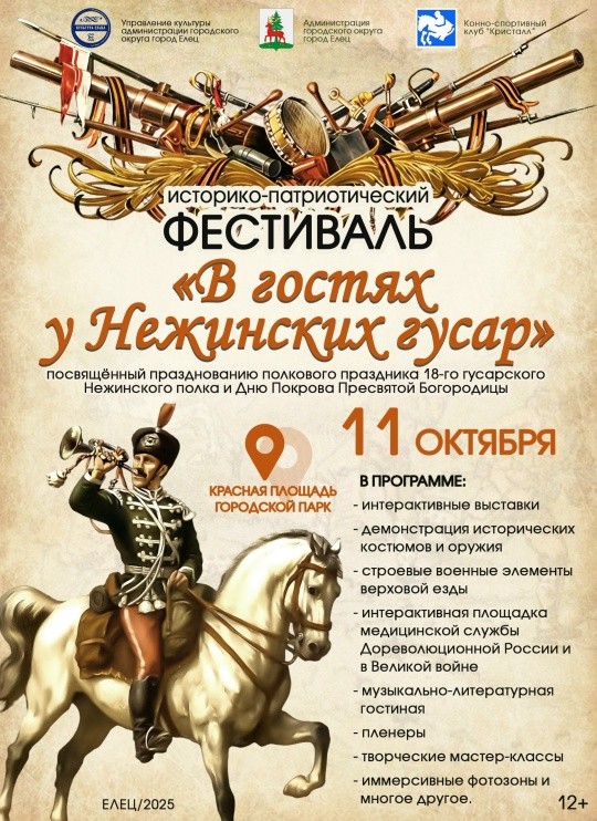 11 октября в городе Ельце состоится историко-патриотический фестиваль истории Российской Армии «В гостях у Нежинских гусар»