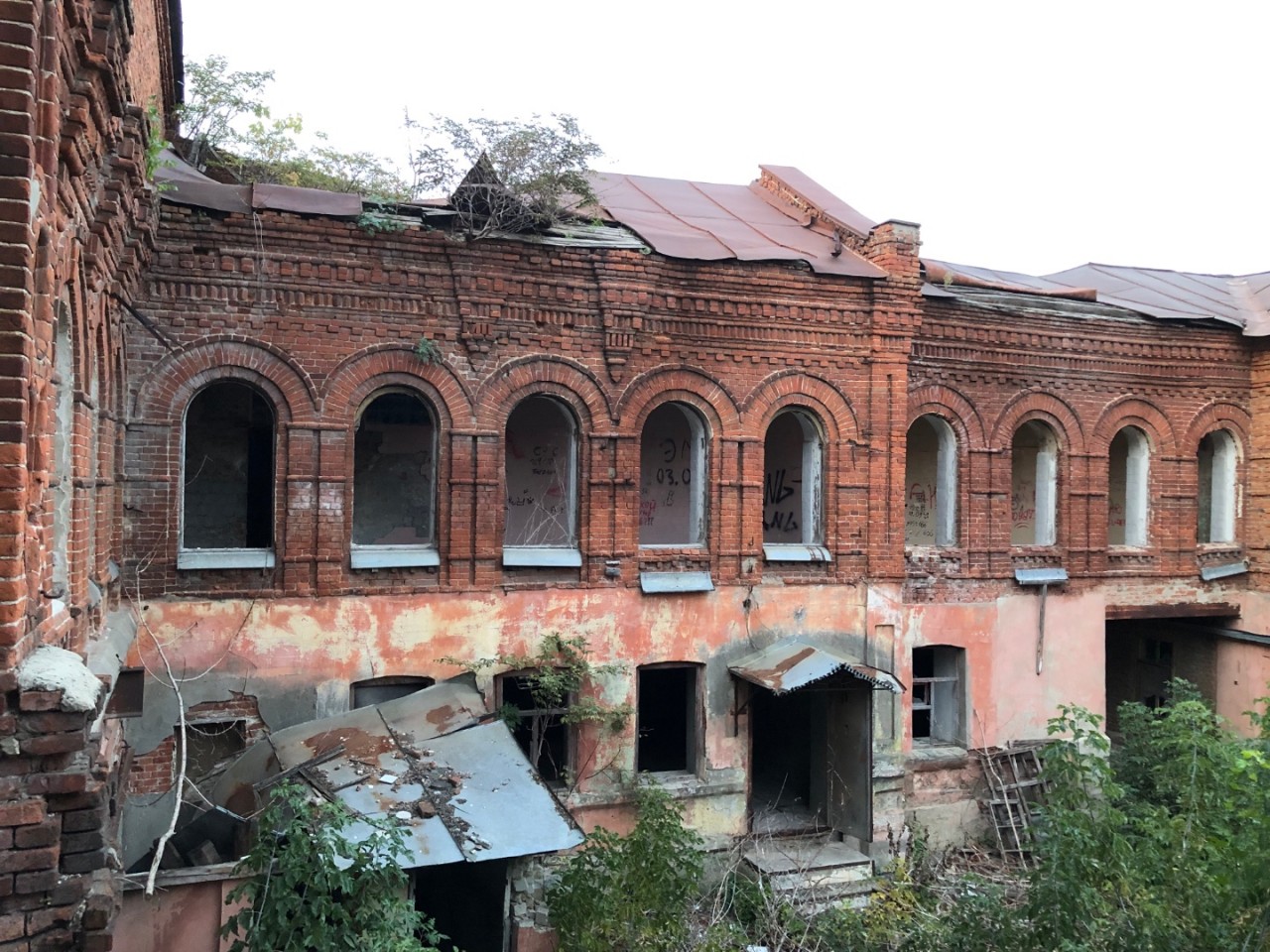 На деле мы являемся невольными очевидцами, как продолжается разрушение старинного комплекса. Крыша провалена, толстые деревья растут во дворе. Металл и оборудование давным давно украдено и вывезено. Почему не сохранили?