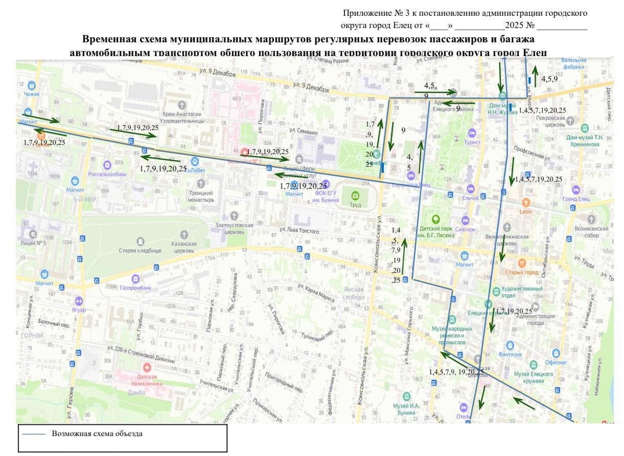 Будет установлена временная схема муниципальных маршрутов регулярных перевозок пассажиров транспортом на территории город Елец согласно приложению № 3.