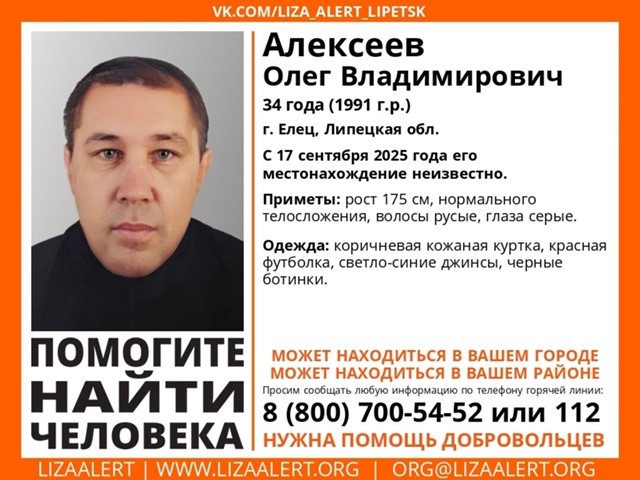 Пропал Алексеев Олег Владимирович, 34 года, г. Елец, Липецкая обл.