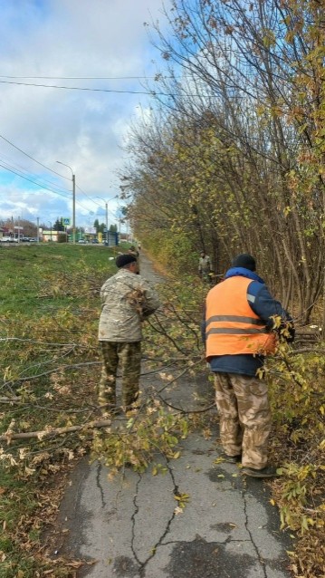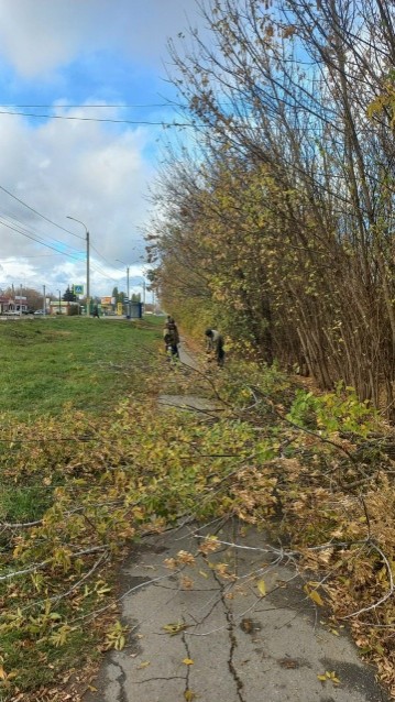 По заявке управления дорог, транспорта и благоустройства произведена вырубка кустов самосева клёна вдоль тротуара между гипермаркетом «Линия» и поворотом на микрорайон Александровский. Выполнен вывоз опиловочного материала.