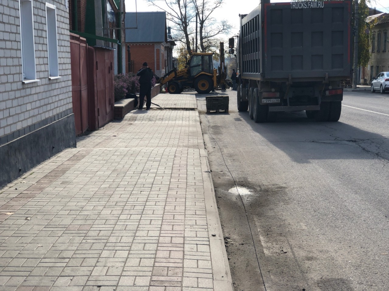 В городе начались работы по замене тротуарной плитки. Дело хорошее. Только разве подрядчик не должен под контролем снимать и складировать тротуарную плитку? Это ведь имущество администрации города! Что происходит?