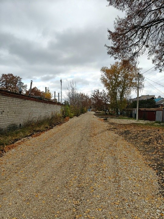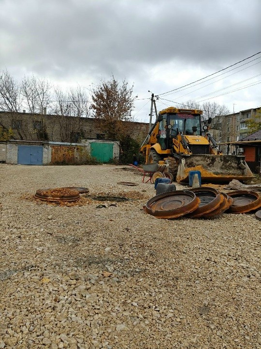 Специалистами уже выполнено поднятие колодцев в уровень с дорожным полотном, а также отсыпка щебнем прилегающей территории.