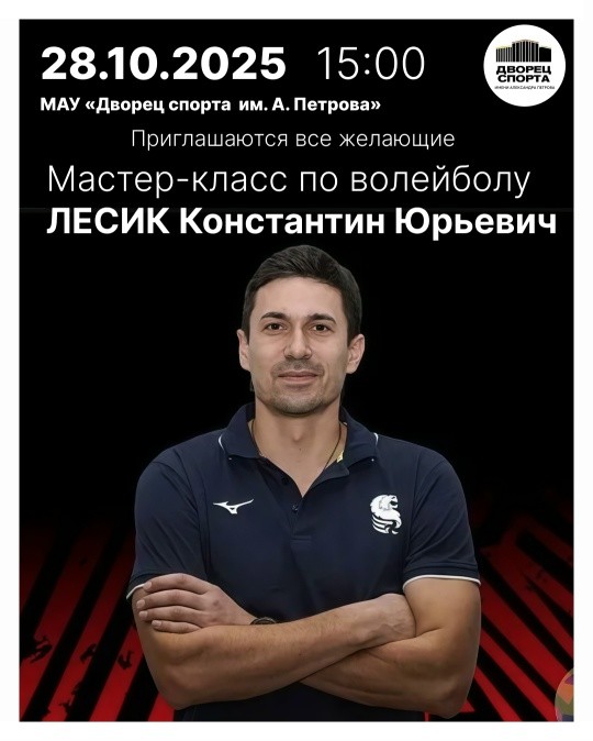 Приглашаем всех желающих на мастер-класс по волейболу от чемпиона мира и Европы среди юниоров Лесик Константина Юрьевича!