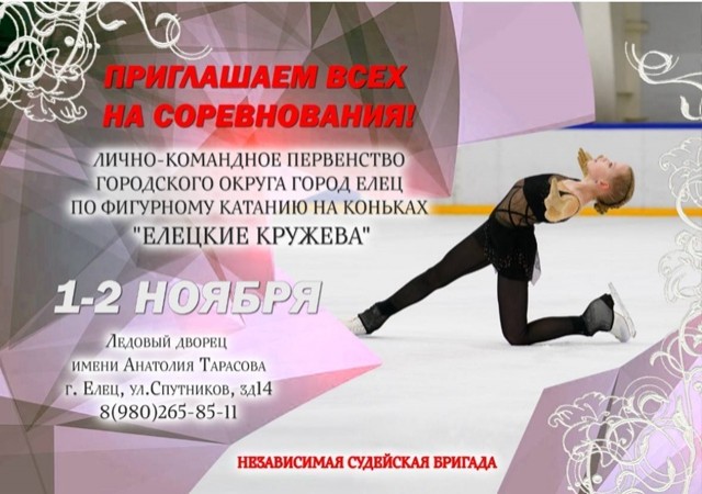 2 ноября в МАУ СК "Ледовый дворец имени Анатолия Тарасова" пройдет лично-командное Первенство городского округа город Елец по фигурному катанию на коньках «Елецкие кружева».