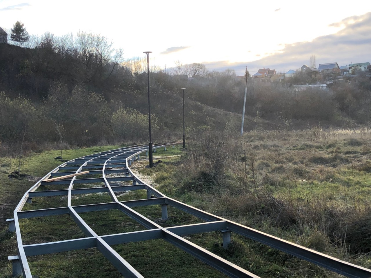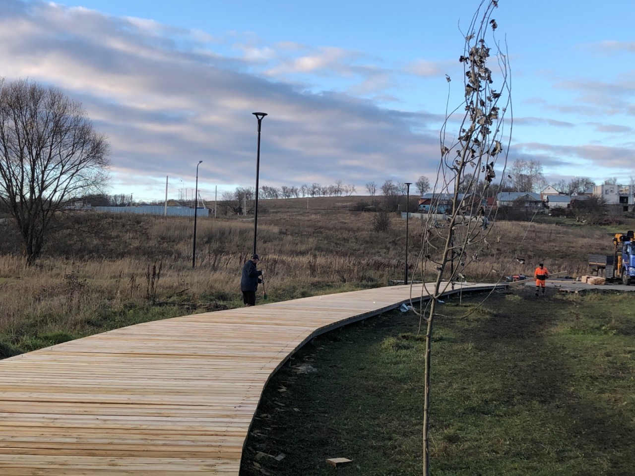 Сегодня многие жители радуются, что благоустройство территории у речки Ельчик возобновилось! Что самое главное-наконец проектировщики учли мнение жителей и запроектировали широкий тротуар. Настил из лиственницы может лежать в любую погоду и служит 10-15 лет. Так как в этих местах болотистая почва и есть возможность подтопления по весне, подрядчик выполняет работы не на земле.