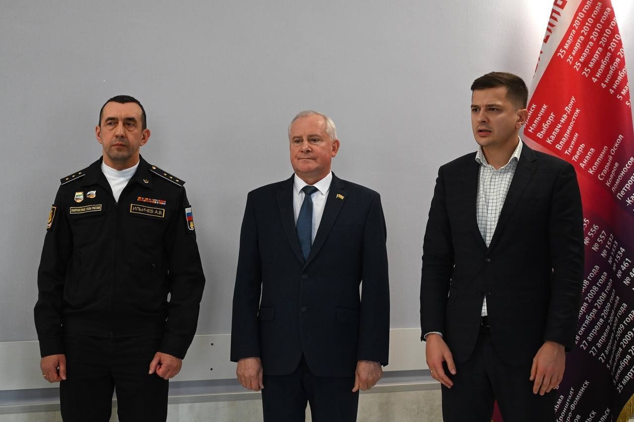 К присутствующим обратились глава городского округа город Елец Вячеслав Жабин, председатель Совета депутатов городского округа город Елец Виктор Никонов и заместитель Военного комиссара города Ельца и Елецкого района Липецкой области Андрей Ильичев.