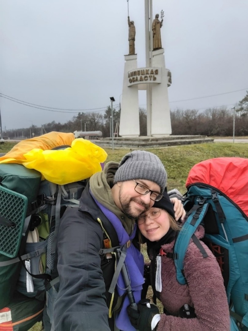 Супруги Катя и Олег идут из Москвы в Херсонес пешком. В нашем регионе они осмотрели достопримечательности Ельца, Задонска и увидели Конь-Колодезь.