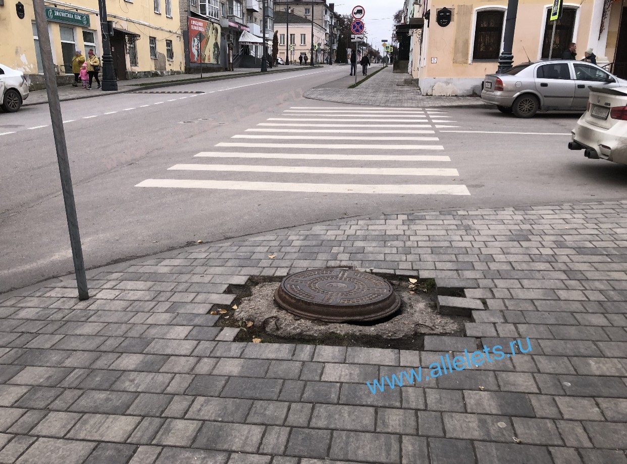 В самом центре города на пересечении улиц Мира и Коммунаров находится вот такая оказия - выступающая с цементом крышка люка. Так как в таком непотребном состоянии данный объект находится давно, елецкие эрудиты подали мысль - огородить данное место и назвать "памятником культуры". Во-первых, это уместно с практической точки зрения, жители и гости города больше не будут спотыкаться, а во-вторых, это может привлечь туристов.) Данную композицию можно назвать "Металл и цемент", или просто "Крышка люка в цементе". Ну а что, современное искусство, оно такое. Можно и конкурс сообразить на лучшее название композиции.