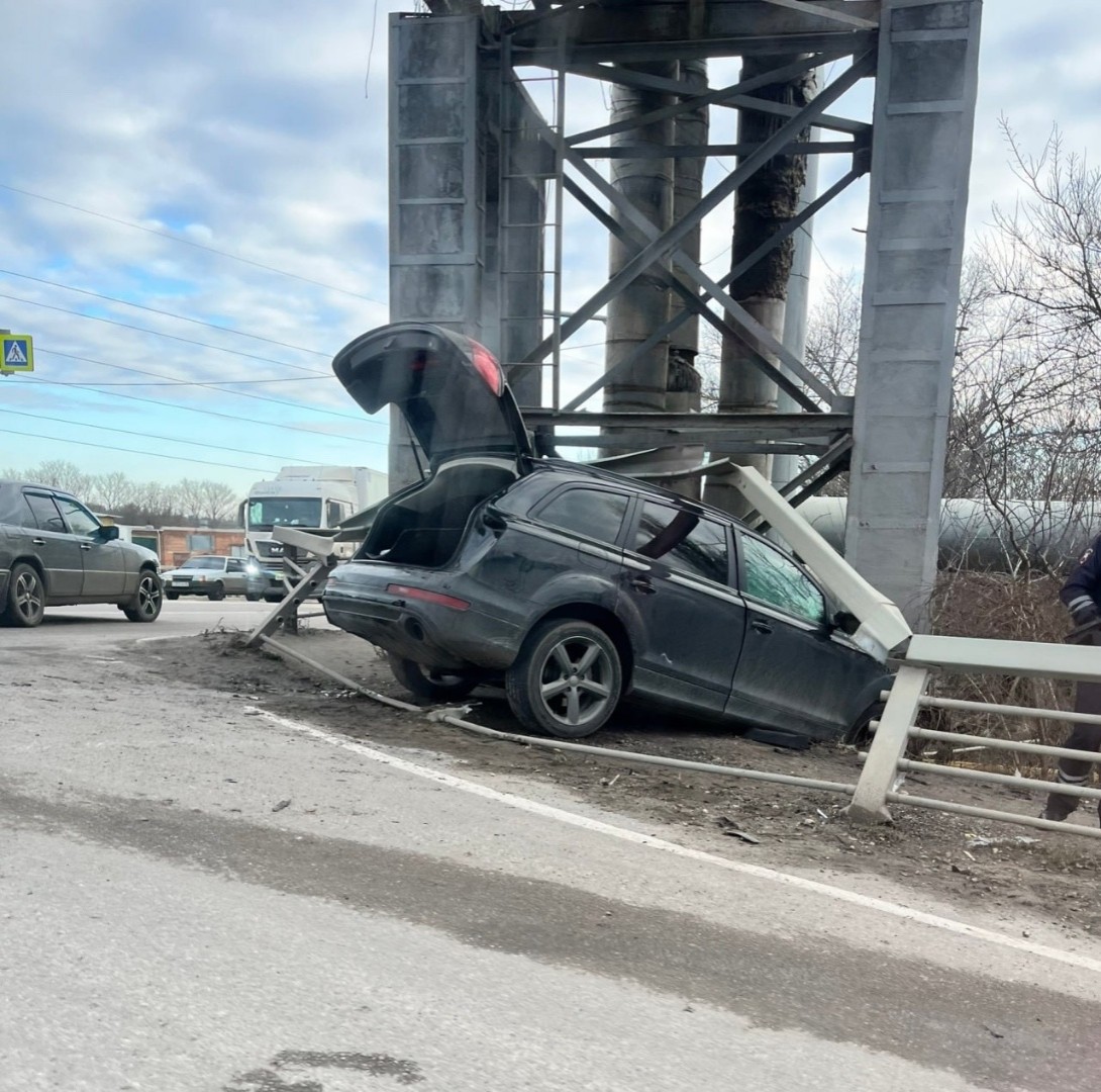 Сегодня утром на перекрестке улиц Промышленной и Ломоносова в Ельце водитель «Audi Q7» снес дорожное ограждение и скрылся с места аварии.