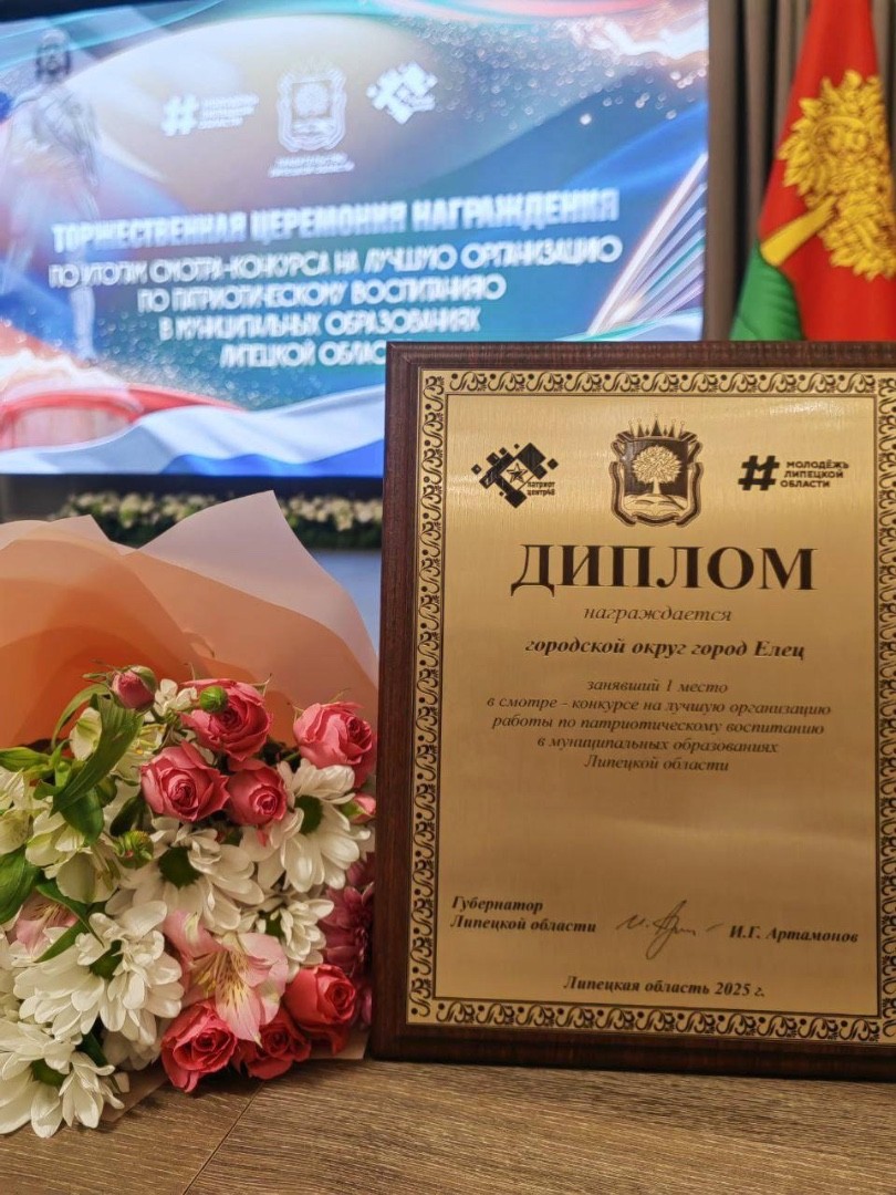 Сегодня в Большом зале Правительства Липецкой области состоялась церемония награждения победителей областного смотр-конкурса на лучшую организацию работы по патриотическому воспитанию. Елец занял первое место в номинации «Лучшая организация работы по патриотическому воспитанию в муниципальном образовании Липецкой области».