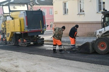 Подрядчик завершил укладку горячего асфальта на ул. Свердлова (участок дороги от ул. Мира до ул. Пушкина). Раннее была выполнена фрезеровка дорожного покрытия.