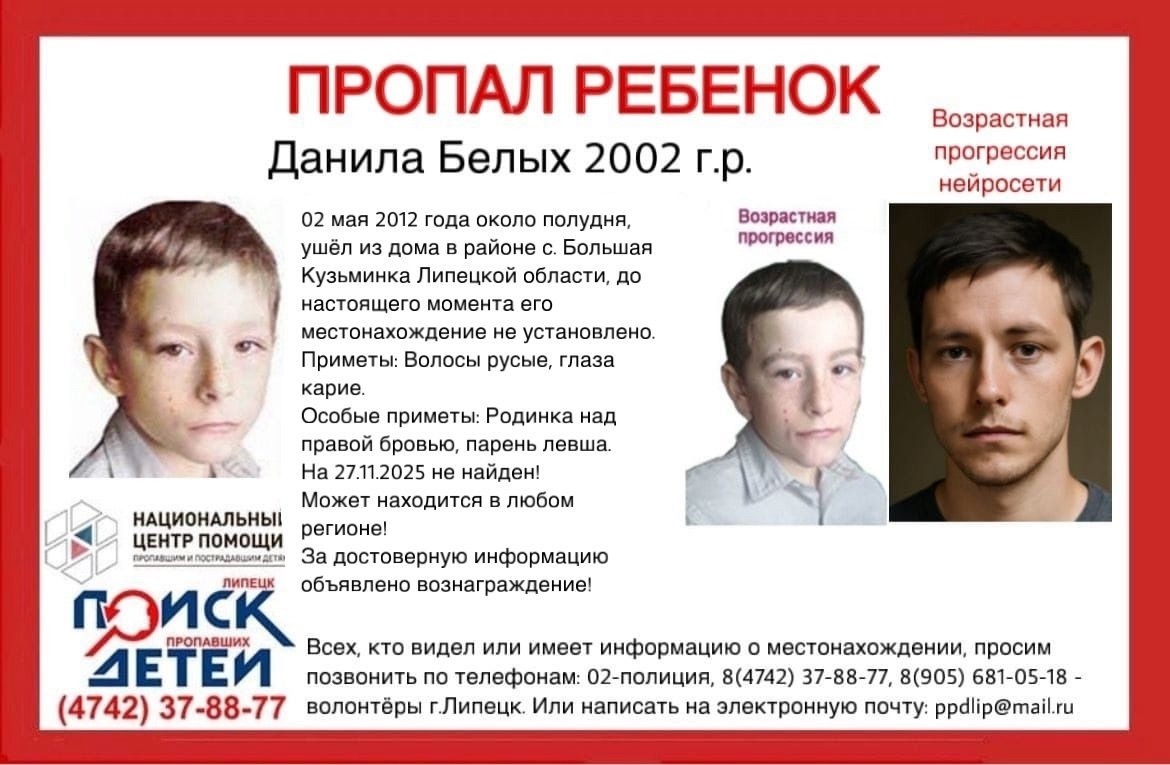 Любовь Белых всё ещё вслушивается в тишину вечеров так же, как в первые дни после его исчезновения — будто вот-вот за дверью раздастся знакомый шаг. Она перебрала в памяти каждый момент тех дней, когда 10-летний Данила вышел в школу, вернулся за деньгами на обед — и растворился. Тогда казалось, что ещё сутки-другие, и он найдётся: его «видели» то в автобусе, то с незнакомцем, то в Липецке. Но след каждый раз обрывался.