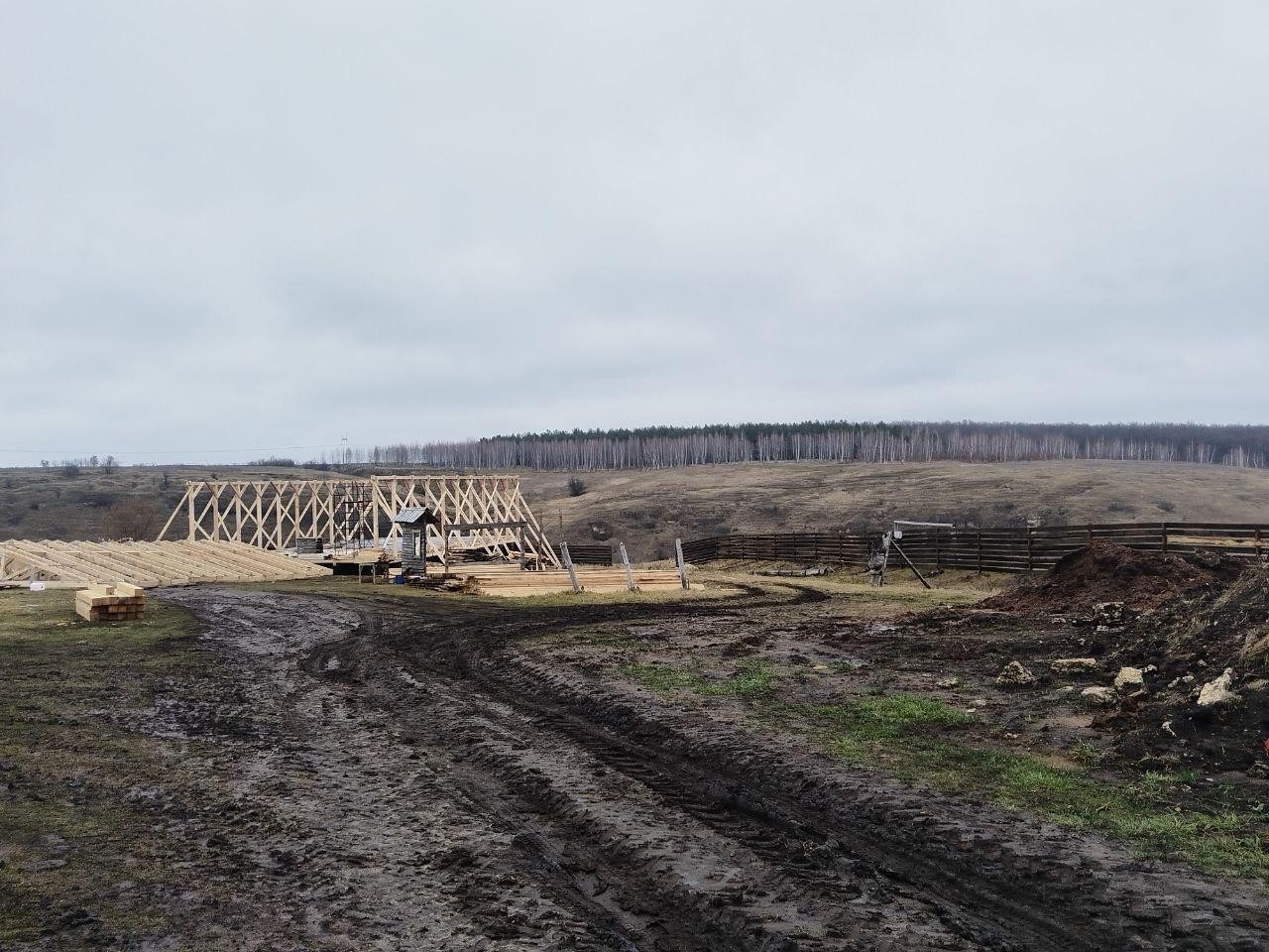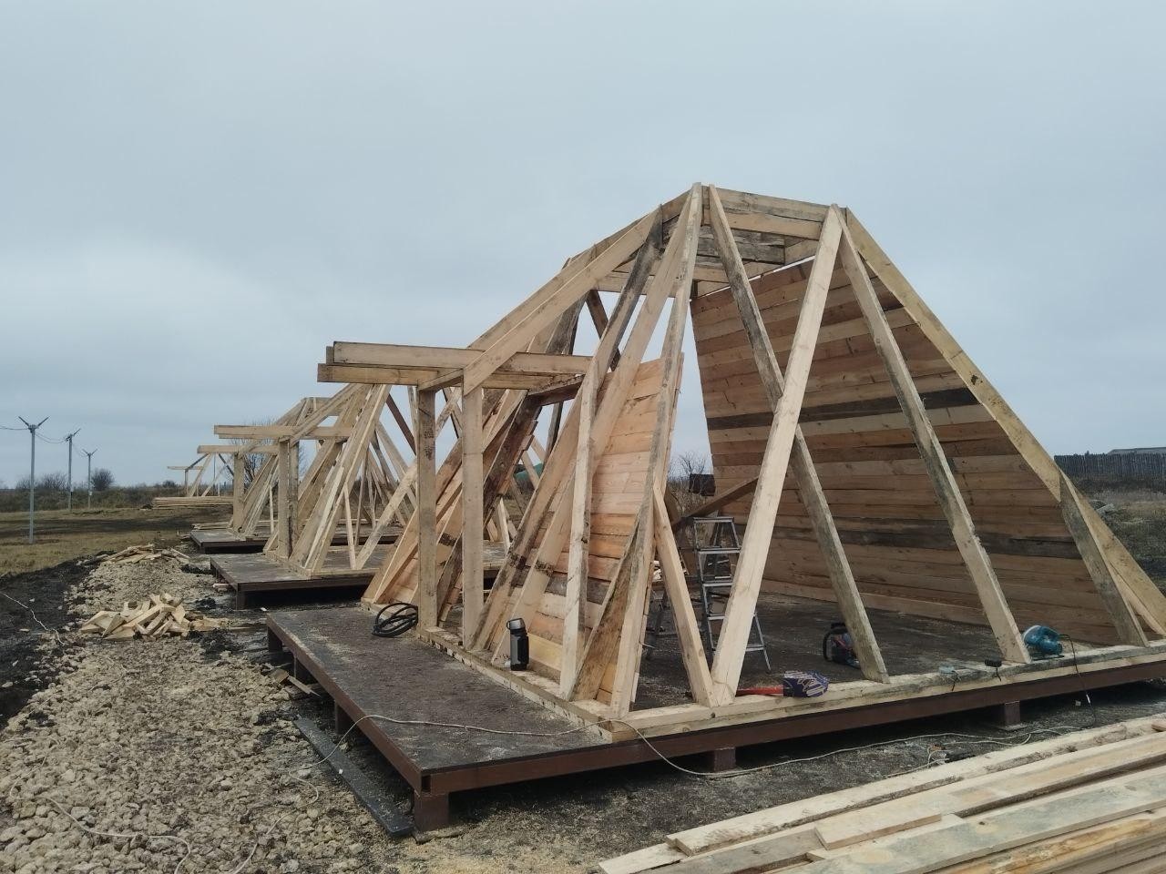 Реконструкторские шатры, беседка-шатёр (200 м²), деревянные дорожки — монтаж и отделка на 50%.
