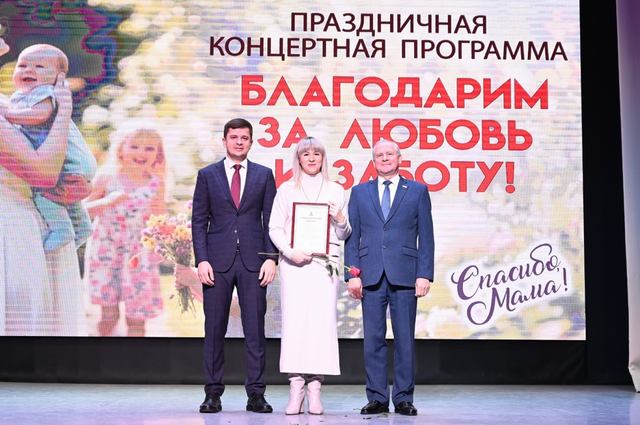 Глава города Вячеслав Жабин и председатель Совета депутатов Виктор Никонов провели церемонию награждения матерей благодарственными письмами за значительный вклад в укрепление семейных традиций и достойное воспитание детей, среди которых участники специальной военной операции.