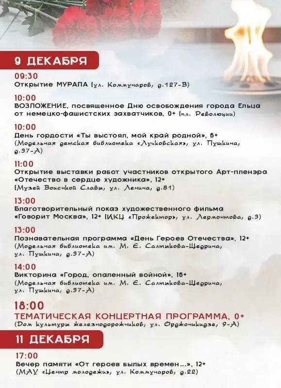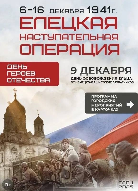 С 7 по 11 декабря пройдут городские мероприятия, посвященные Дню освобождения Елецкого района и города Ельца от немецко-фашистских захватчиков