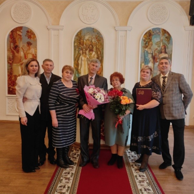 Дорогие Василий Иванович и Татьяна Петровнапоздравляем вас с Золотой свадьбой! Это невероятное достижение, которое впечатляет и восхищает. 50 лет любви, согласия, терпения и верности – это поистине великое счастье. Пусть ваш дом будет наполнен радостью, уютом и благополучием. Пусть каждый день вашей совместной жизни приносит новые радостные моменты и запоминающиеся события. Счастья, здоровья, искренней любви и гармонии вам, дорогие наши юбиляры! Всех благ и поздравлений вам от всего сердца!