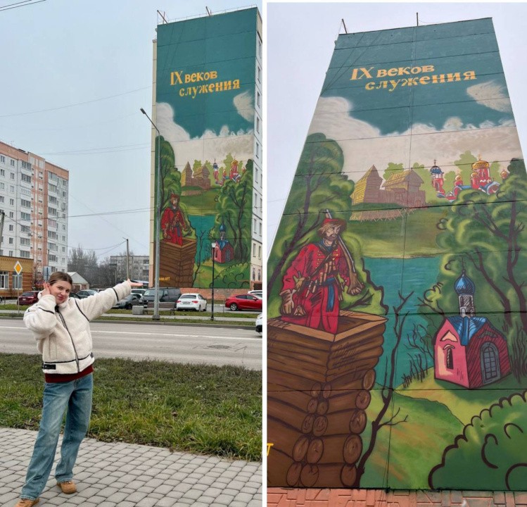 Мурал в Ельце на стене дома № 127 на улице Коммунаров создала 24-летняя художница из Липецка Анастасия Аленина
