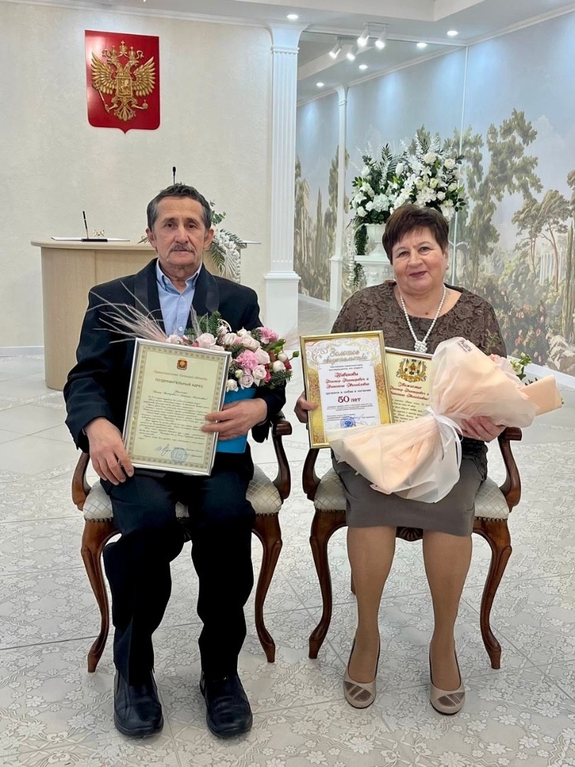 Вчера гостями нашего ЗАГСа стали супруги Новиковы Виктор Викторович и Антонина Михайловна из с. Каменское, отмечающие свой «Золотой» юбилей.