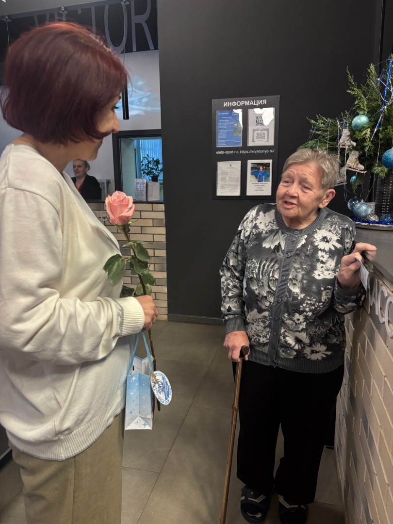 Директор спорткомплекса Татьяна Николаевна Абрамова поздравила нашу легендарную гостью — Светлану Георгиевну Меркулову.