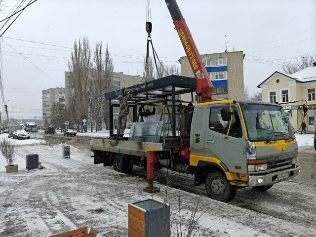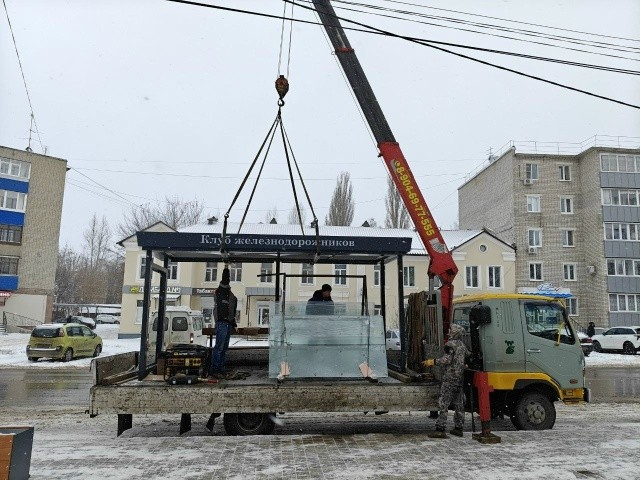 В районе ДК Железнодорожников производится установка нового остановочного павильона