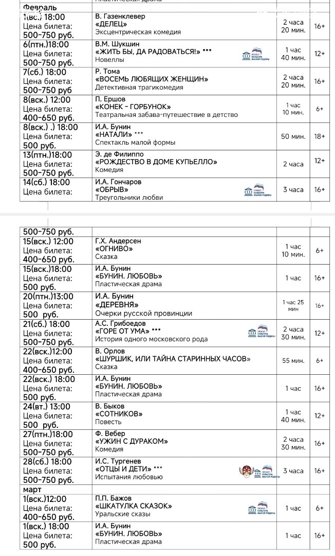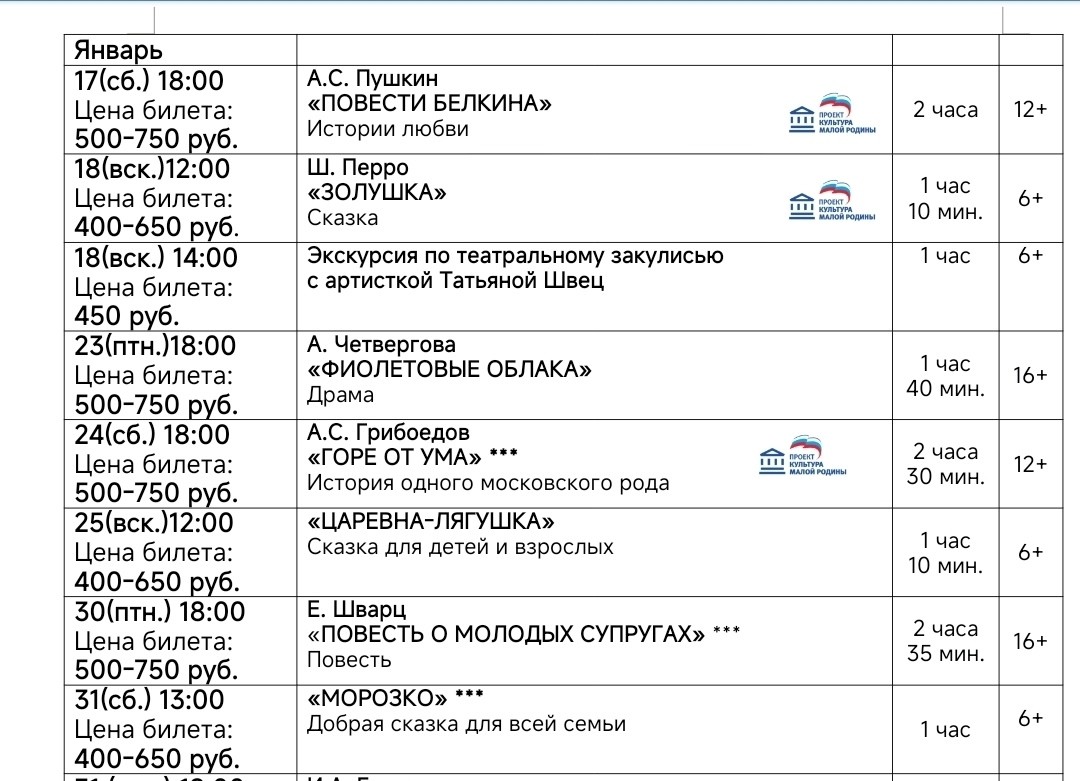 Репертуар драмтеатра «Бенефис» до конца января и на февраль