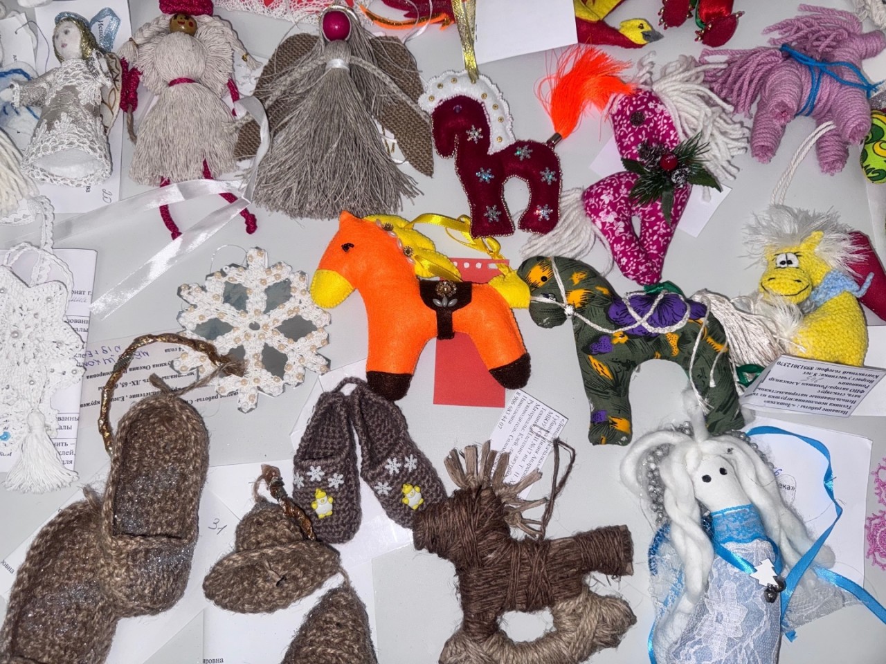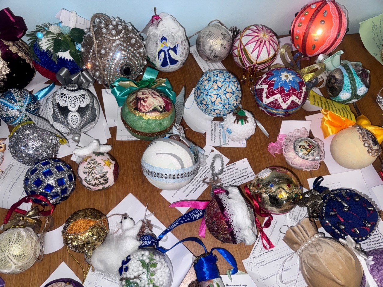 Более 270 работ подготовили елецкие дошколята, школьники, студенты, педагоги и родители, воплотив самые сказочные замыслы и создав изысканные украшения в духе семейных рождественских традиций. На конкурс были представлены авторские ёлочные игрушки из дерева, ткани, бумаги в виде фигурок, шаров, домиков, ангелов, сказочных персонажей с элементами росписи, вышивки, тиснения, кружевоплетения.