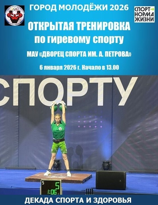 в МАУ "Дворец спорта им. А. Петрова" пройдет открытая тренировка по гиревому спорту.