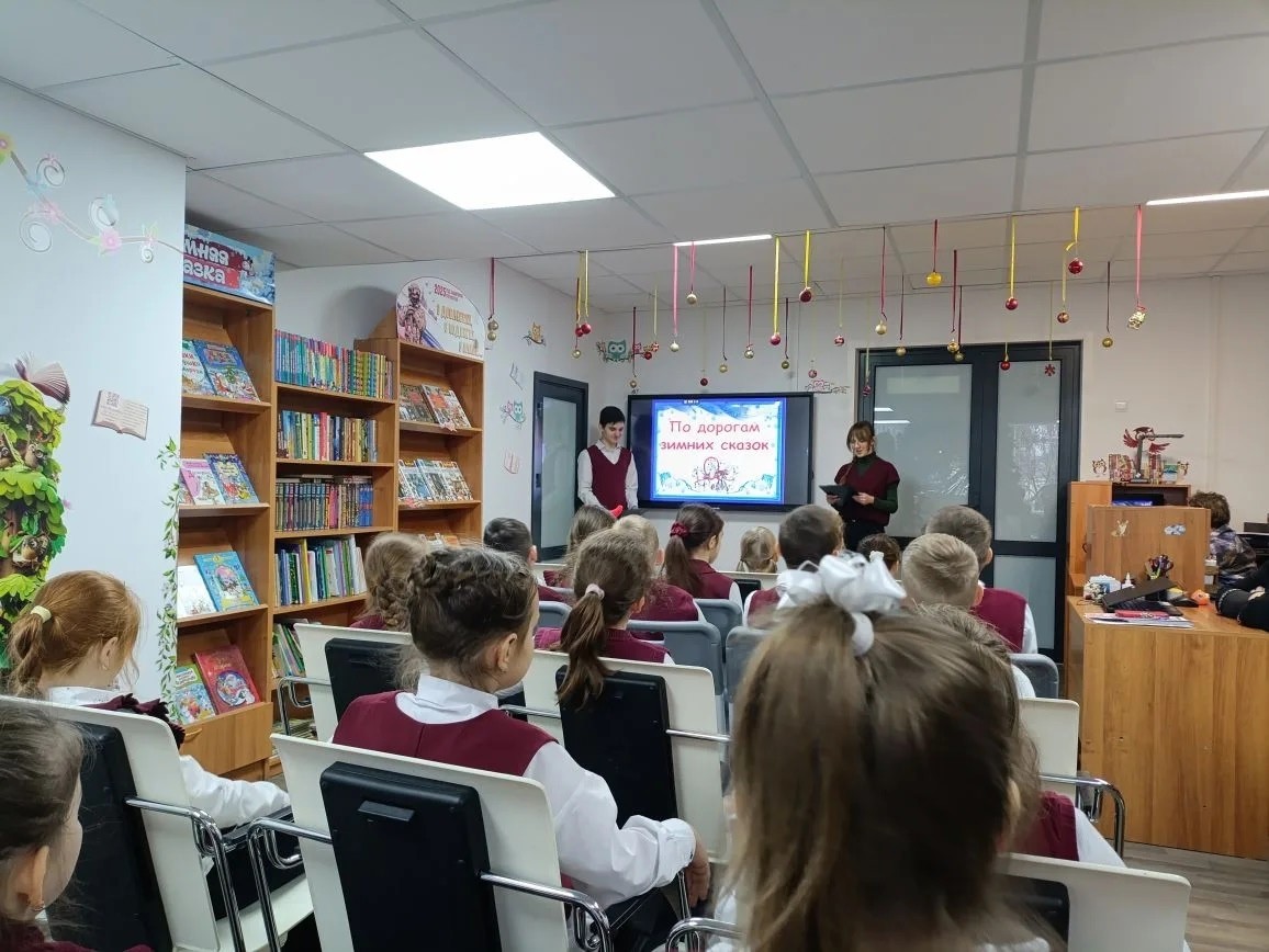 В библиотеке лицея №5 для любимых читателей прошло библиотечноемероприятие «По дорогам зимних сказок». Ребята отвечали на вопросы волшебной викторины, играли, отгадывали зимние загадки, узнавали сказку по иллюстрации, читали новогодние стихи, путешествуя по сказочным зимним дорожкам. Сделать праздник весёлым и интересным помогли ведущие-старшеклассники, которые вместе с гостями задорно распевали новогодние песенки.