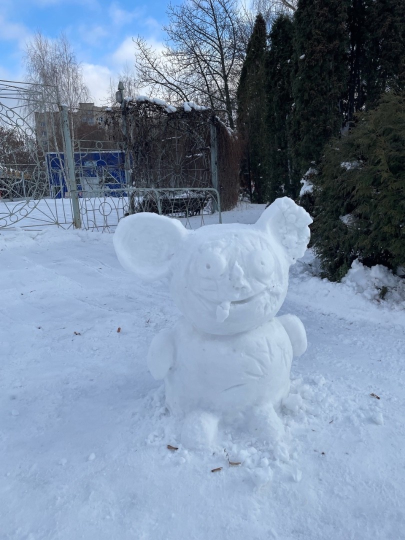 В уютных парках нашего города юные гости и их родители создают сказочных персонажей из снега, которым богат январь в наступившем году.