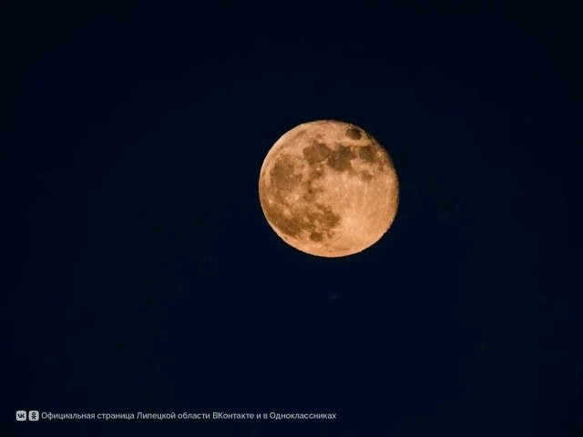 Рыжеватая луна осветила небо над Липецкой областью, превратившись в почти идеально ровный круг.