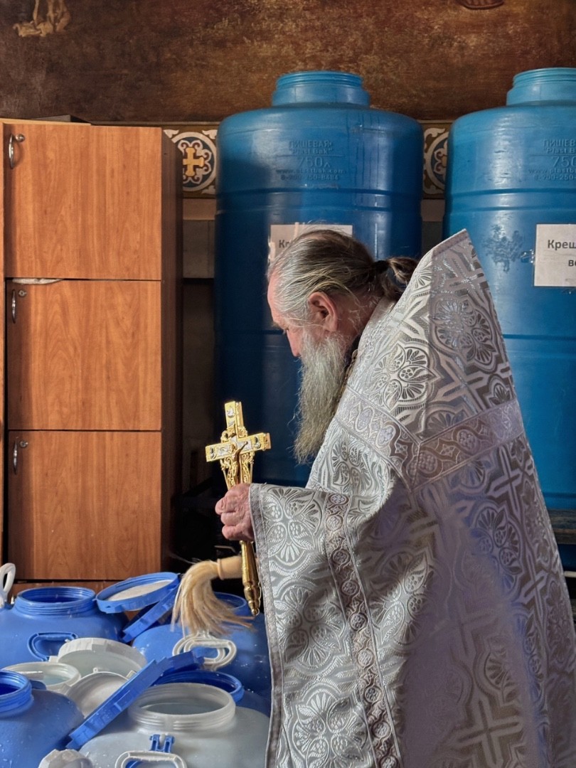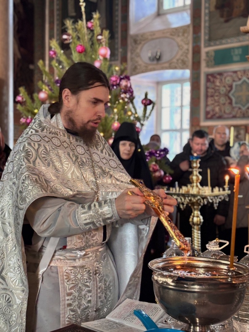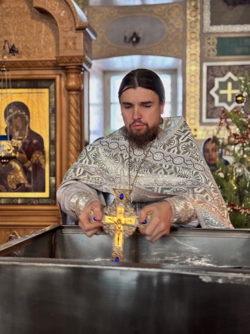 Сегодня утром, в Навечерие Богоявления, мы отслужили Литургию святителя Иоанна Златоуста, после чего по заамвонной молитве было Великое освящение воды.