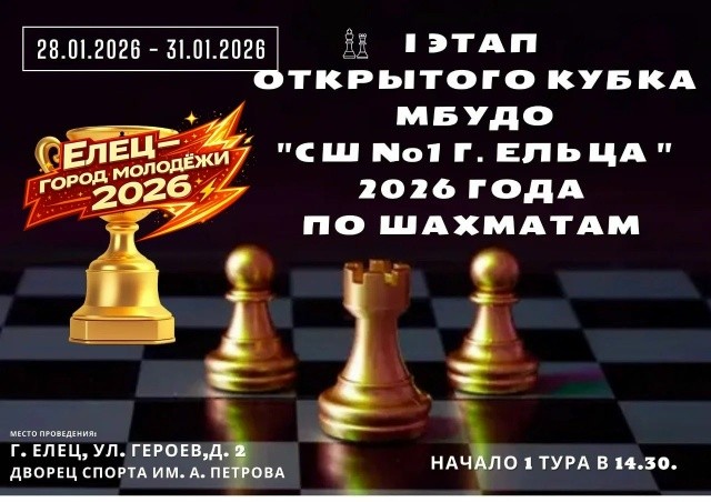 В Ельце состоится I этап Открытого кубка МБУДО "СШ №1" г. Ельца по шахматам 2026 года