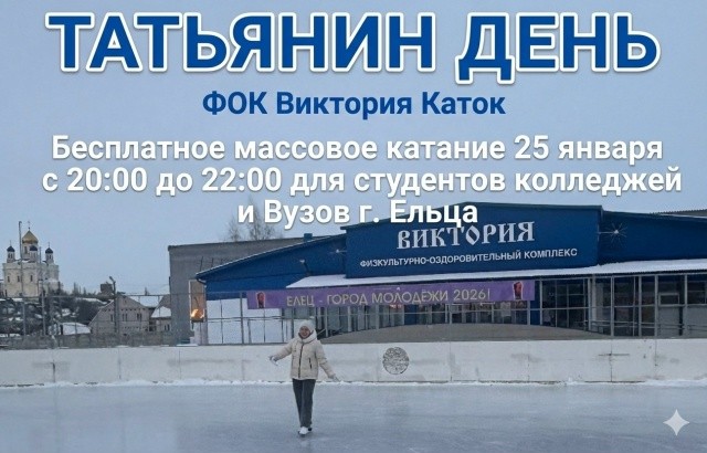 Впервые в ФОК «Виктория» пройдёт крутая акция: БЕСПЛАТНЫЕ массовые катания для всех студентов колледжей и вузов Ельца!