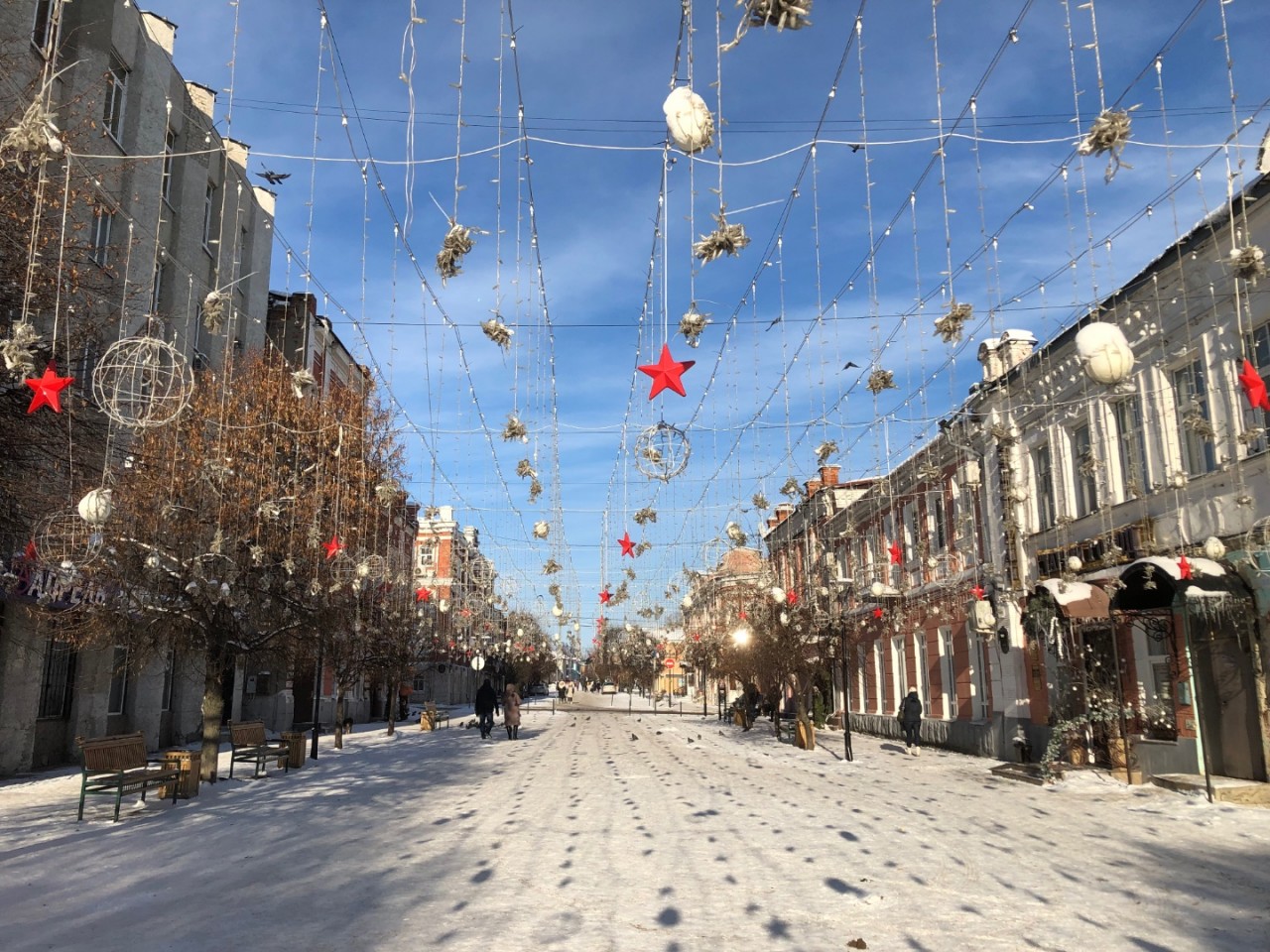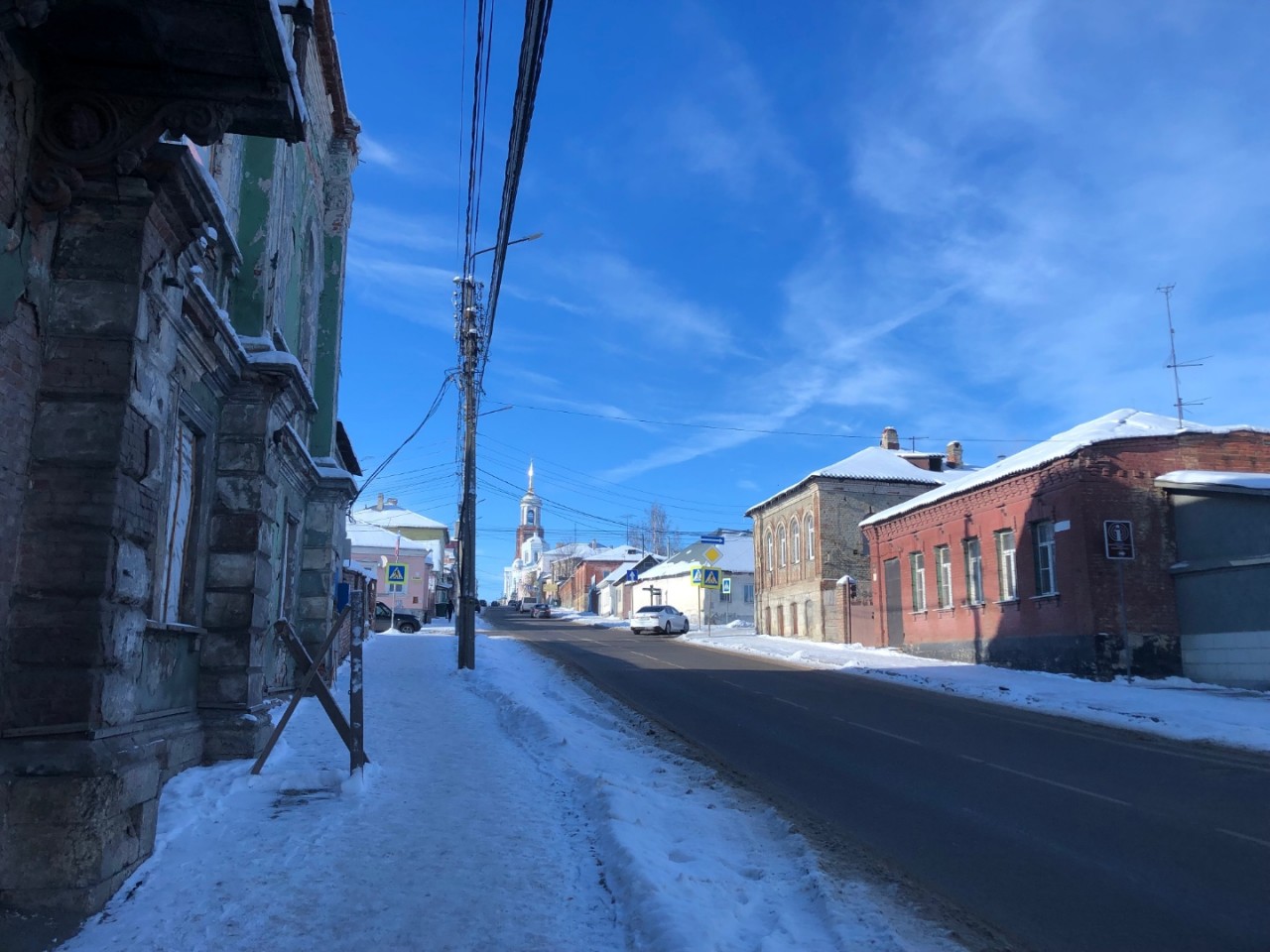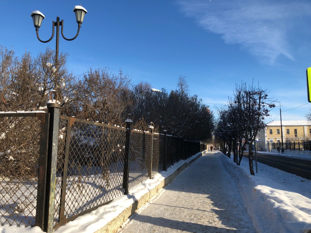 В парках оказались расчищенные от снега тротуары, приятно гулять. А вот по улице Мира с одного из зданий угрожающе свисают довольно большие сосульки. Хотя совсем недавно чиновники обещали наказывать рублём за подобные нарушения. Сосульки с крыш обязаны чистить своевременно.