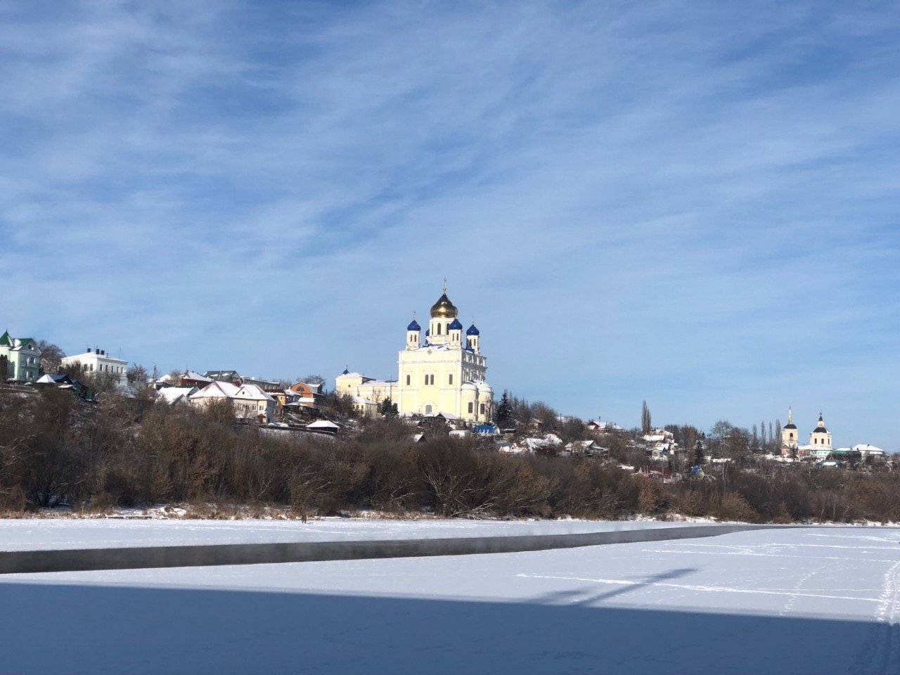 Сегодня в Ельце прекрасный солнечный день! Солнце уже начинает пригревать, хотя на улице -13 градусов мороза. Душа радуется в такой день. Красивый у нас город. В этом году должны сделать набережную реки Сосна, хотя это совсем маленький участок по длине, если сравнивать с набережной реки Воронеж в Воронеже. Сделали бы набережную от жд. моста до понтонного моста - это был бы уровень для города.