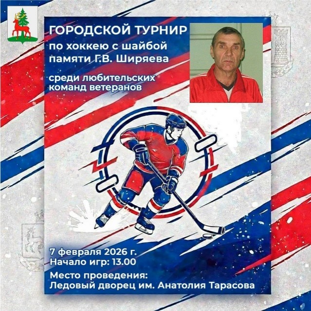 Турнир памяти тренера Геннадия Викторовича Ширяева среди любительских команд ветеранов. Турнир будет приурочен к 70-летнему юбилею тренера. Для участия в турнире приглашаются все желающие любители хоккея как индивидуально, так и командами. Возраст - 40+. По вопросу заявок и участия обращаться по телефону Оргкомитета турнира- +79046809920 (звонки/Телеграм). Крайний день приема заявок - 5 февраля 2026 года. Участие бесплатное. Это мероприятие для сильных духом, хочешь проверить себя - звони!