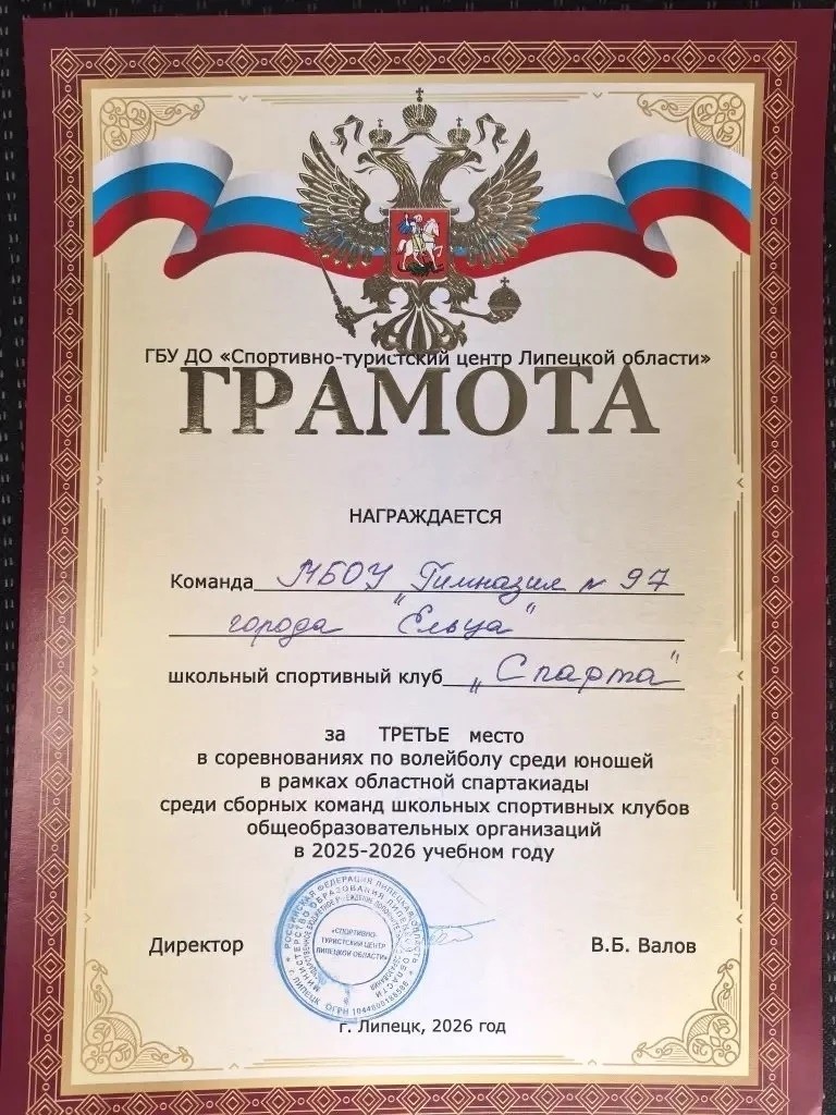 Команда ШСК «СПАРТА» МБОУ «Гимназия №97 г. Ельца» заняла почетное 3 место!