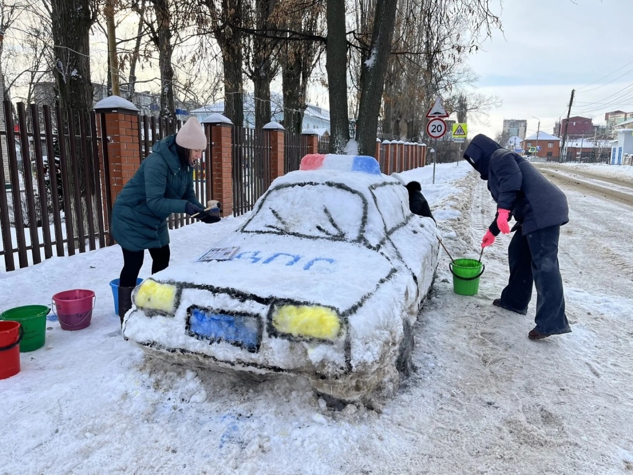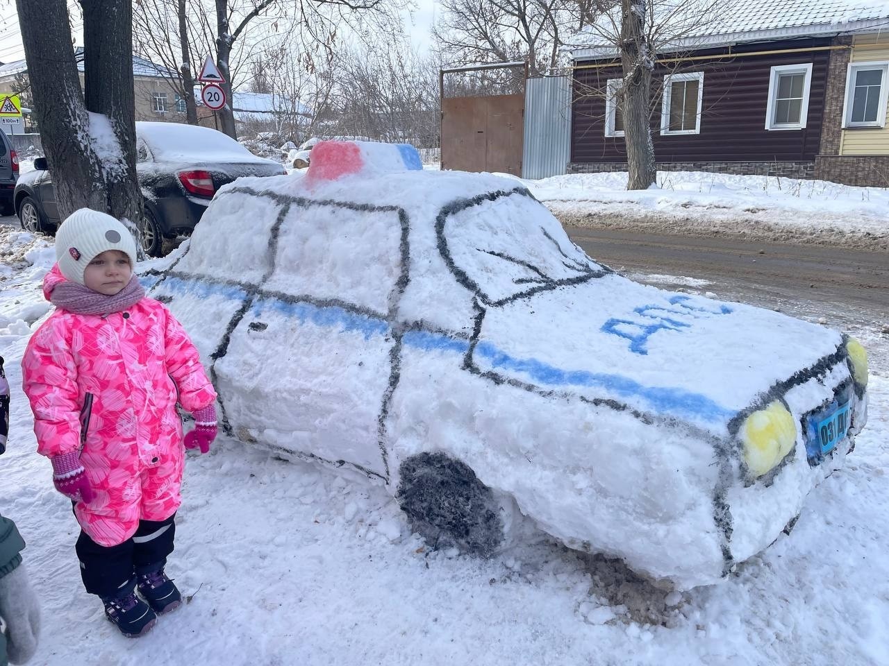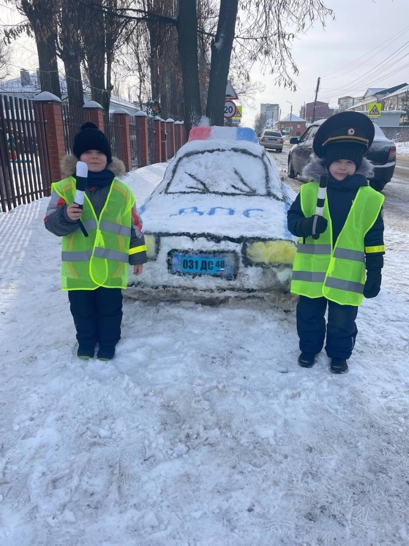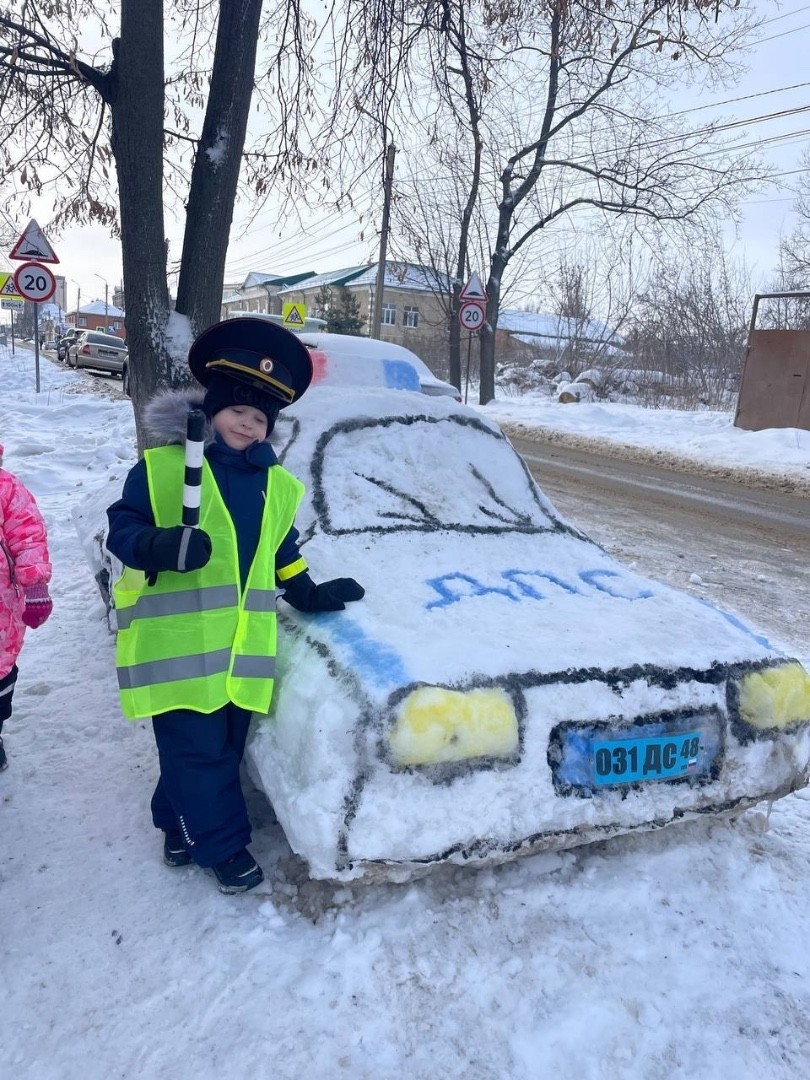 Дети, воспитатели и участники объединения "Родительский патруль" детского сада №31 "Сказка" проявили инициативу и креативность, создав из снега настоящую копию машины ДПС прямо на территории дошкольного учреждения. Эта акция была организована специально для привлечения внимания автомобилистов к проблемам безопасности дорожного движения.