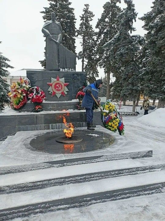 По заявке управления дорог, транспорта и благоустройства выполнена механизированная чистка снега на кладбище п. Капани, кладбище по Орловскому шоссе, Аргамаченское кладбище. Проведено обслуживание воинских захоронений (уборка, чистка снега) мкр. Александровский, Казанское кладбище, на мемориале Вечный огонь. Также выполнен ремонт техники.