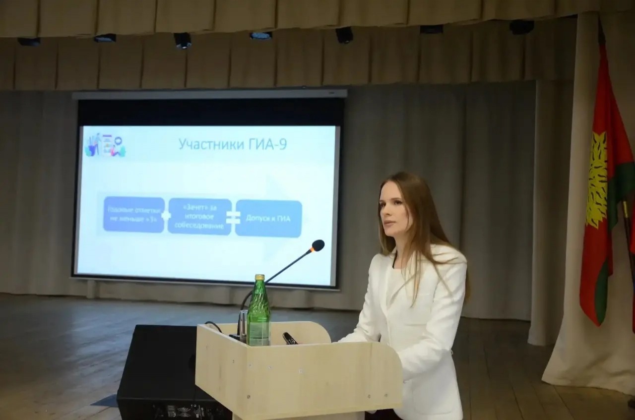 Стрючкова А.В. — главный специалист‑эксперт комитета образования. Она подробно рассказала о нормативных документах, регламентирующих проведение ГИА‑9, и порядке проведения экзаменов.