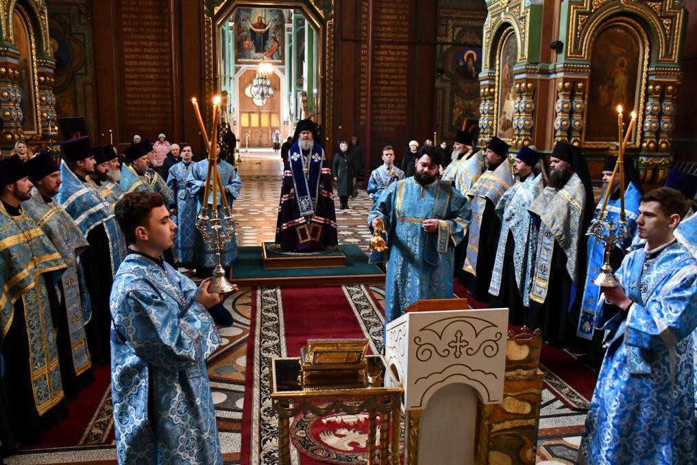 После внесения ковчега в храм был совершен краткий молебен, в завершении которого пропета молитва по Пресвятой Богородице «Царице моя Преблагая».