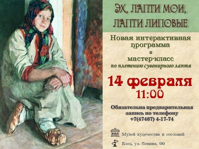 В завершении каждого ждет творческий мастер-класс по созданию сувенирного лапотка.
