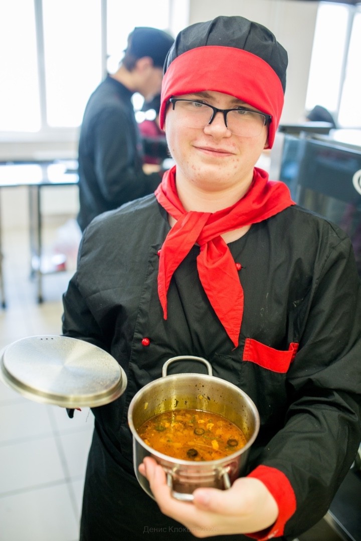 В современной лаборатории колледжа царит особенный аромат. Идет учебная практика. Ребята варят солянку - блюдо с характером, требующее точности, чутья и уважения к традициям.