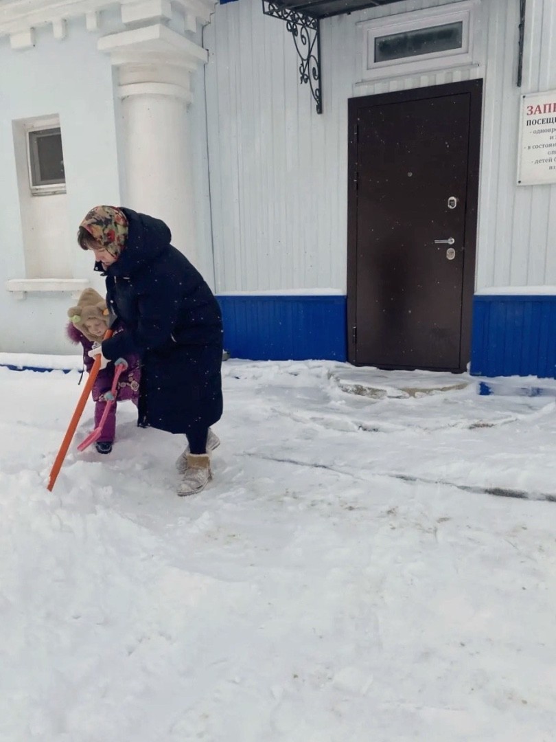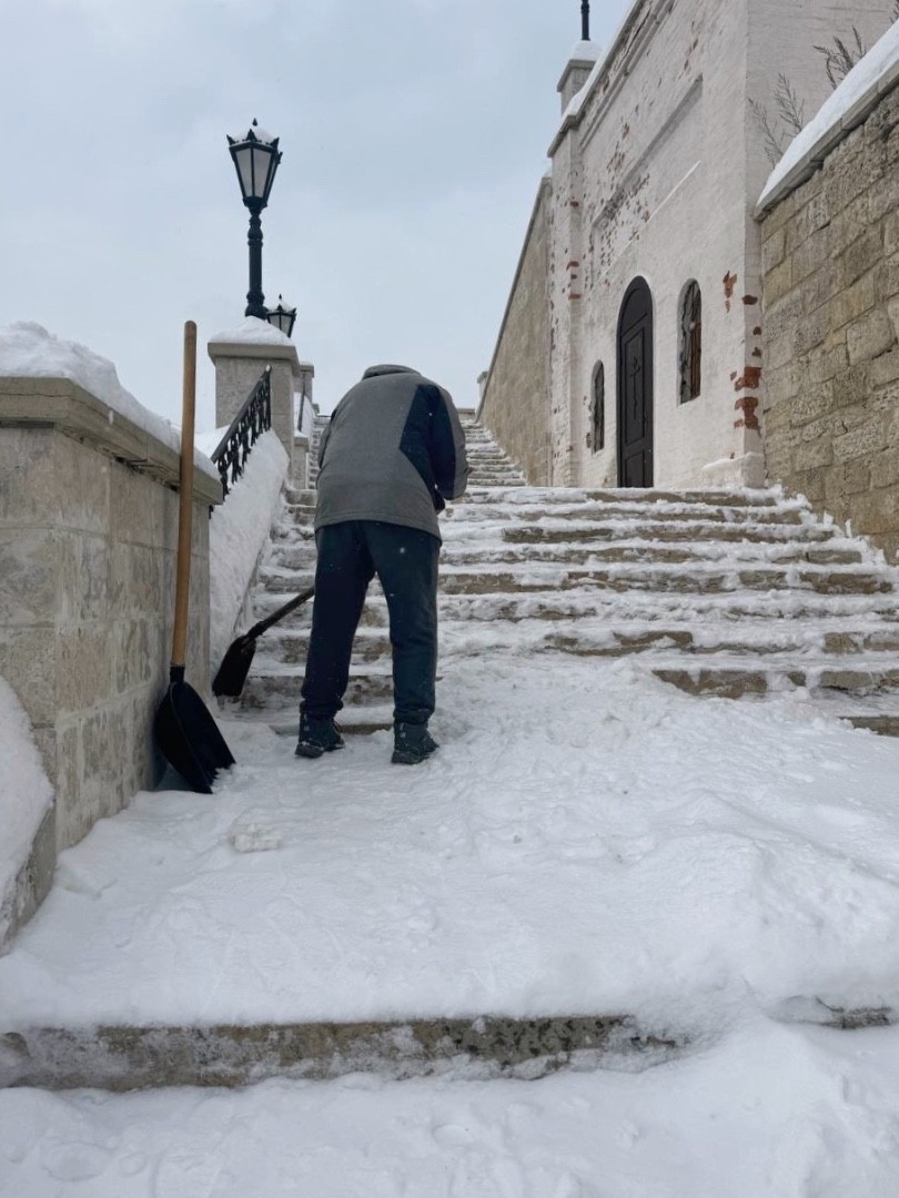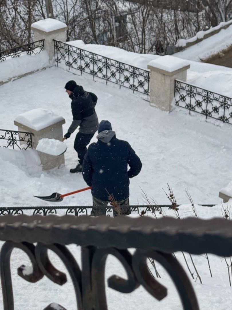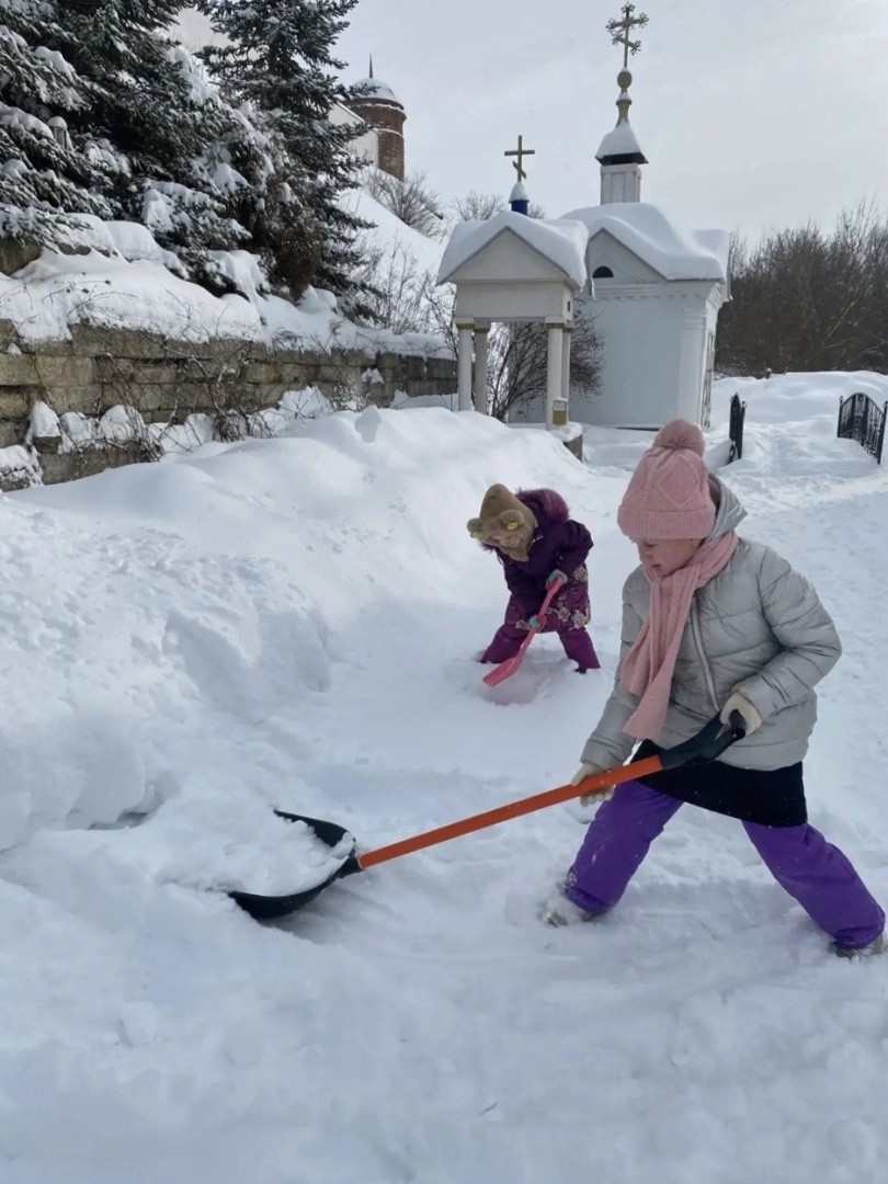 В Знаменском женском монастыре прихожане помогали убирать снег