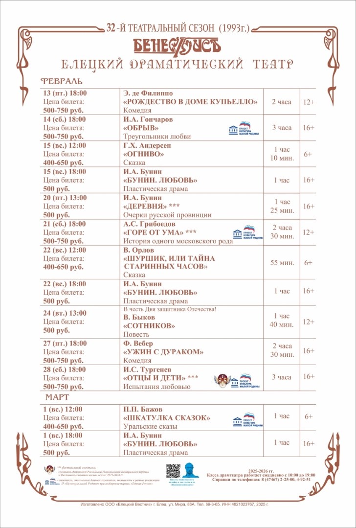 Касса драмтеатра работает ежедневно с 10:00 до 19:00.