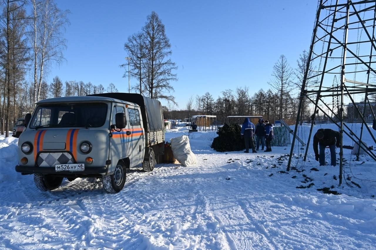 Специалисты АСС убирают новогодние украшения с улиц города Ельца