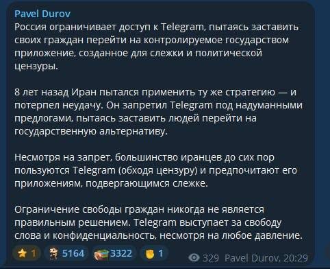 Павел Дуров прокомментировал ограничение Telegram в России