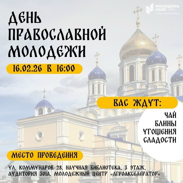 в Молодёжном центре «АгроАкселератор» состоится мероприятие, приуроченное ко Дню православной молодёжи.